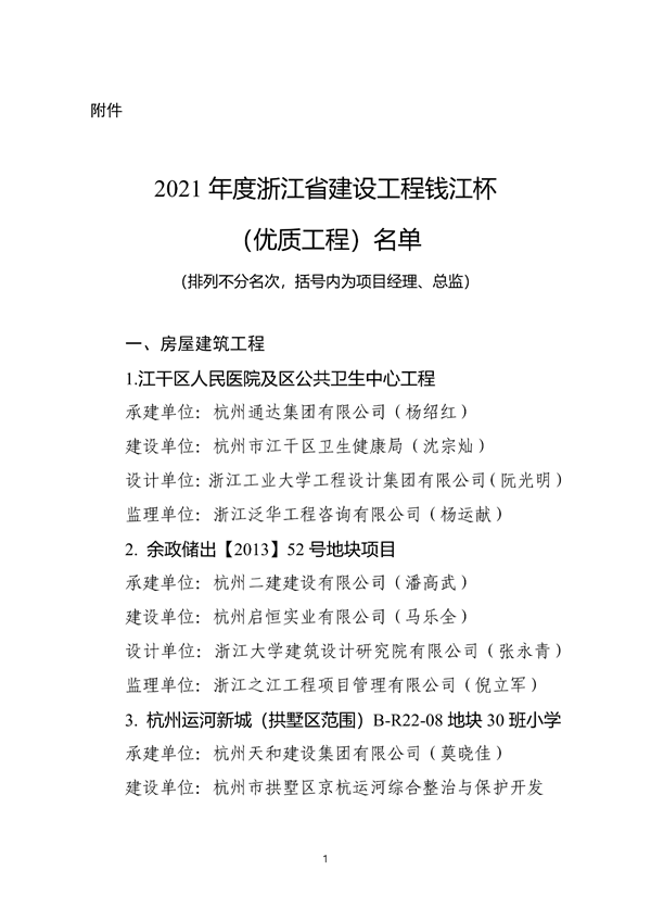 根據(jù)《浙江省住房和城鄉(xiāng)建設(shè)廳關(guān)于公布2021年度浙江省建設(shè)工程錢江杯(優(yōu)質(zhì)工程)考核認(rèn)定名單的通知》,我公司承建的景寧畬族自治縣鳳凰學(xué)校新建工程、麗水二中校園完整工程2個項目榮獲2021年度浙江省建設(shè)工程錢江杯(優(yōu)質(zhì)工程)。錢江杯(優(yōu)質(zhì)工程)是浙江省工程建設(shè)領(lǐng)域的最高質(zhì)量獎項,代表了浙江省建筑業(yè)工程質(zhì)量的最高水平。