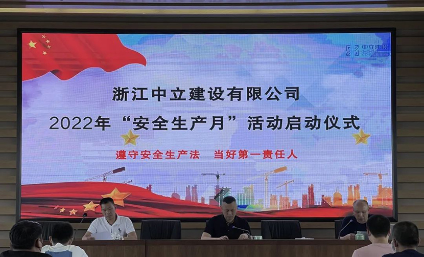 6月9日,浙江中立建設開展“安全生產月”活動啟動儀式,廣泛深入動員,做好氛圍營造。