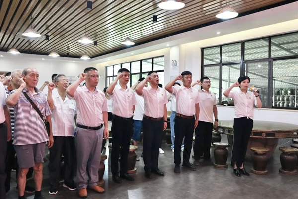 區(qū)委黨校常務(wù)副校長陸朝霞同志帶領(lǐng)全體黨員面向黨旗,高舉右臂,緊握右拳,面對鮮紅的黨旗重溫入黨誓詞。